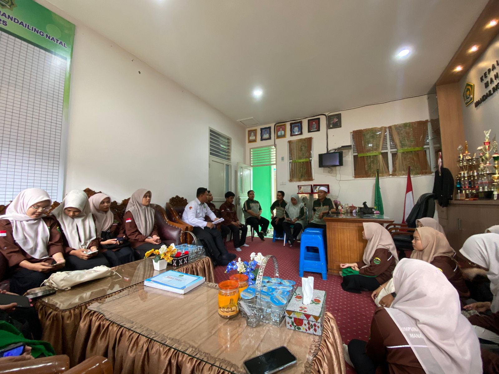 Rombongan mahasiswa disambut hangat oleh jajaran pimpinan madrasah. Dalam sambutannya, Wakil Kepala Madrasah (Wakamad) 1, Bapak Marwansyah, menyampaikan apresiasinya atas kehadiran mahasiswa STAIN Madina. Ia menekankan pentingnya sinergi antara perguruan tinggi dan madrasah dalam mengembangkan wawasan pendidikan.